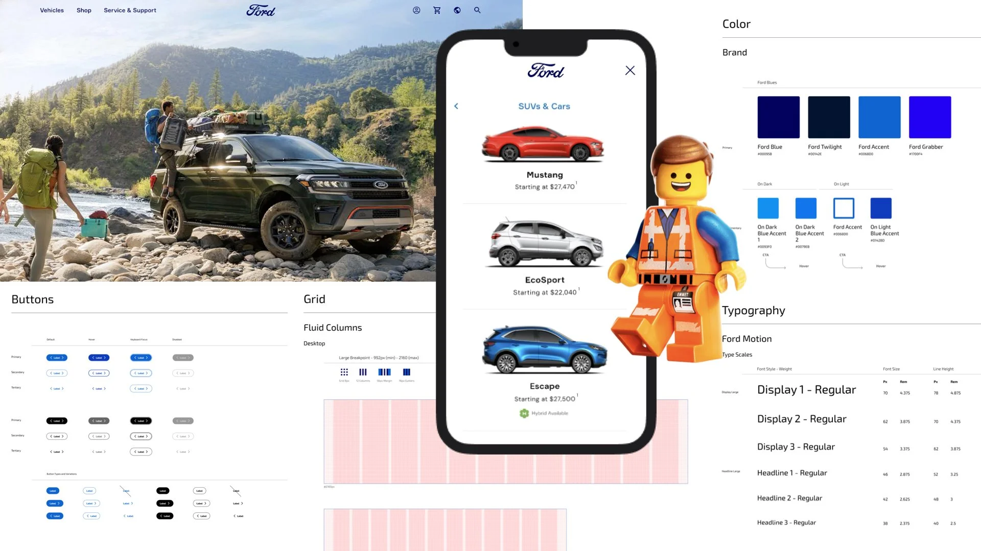 When the first Mustang Mach-E prototypes rolled into the studio, our screens told three different stories. The tablet UI in the cabin spoke one dialect, the marketing site another, the mobile app a third. If a single vehicle could feel that fragmented, what chance did the larger Ford ecosystem have? We needed a lingua franca—one that any designer, developer, or marketer could speak without an accent.
